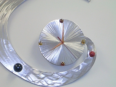Fun Design in great colors, Red, Black, Copper, Gold and Aluminum. The clock face sits about 5 to 6 inch,s from the wall giving this clock a 3 d layered look.